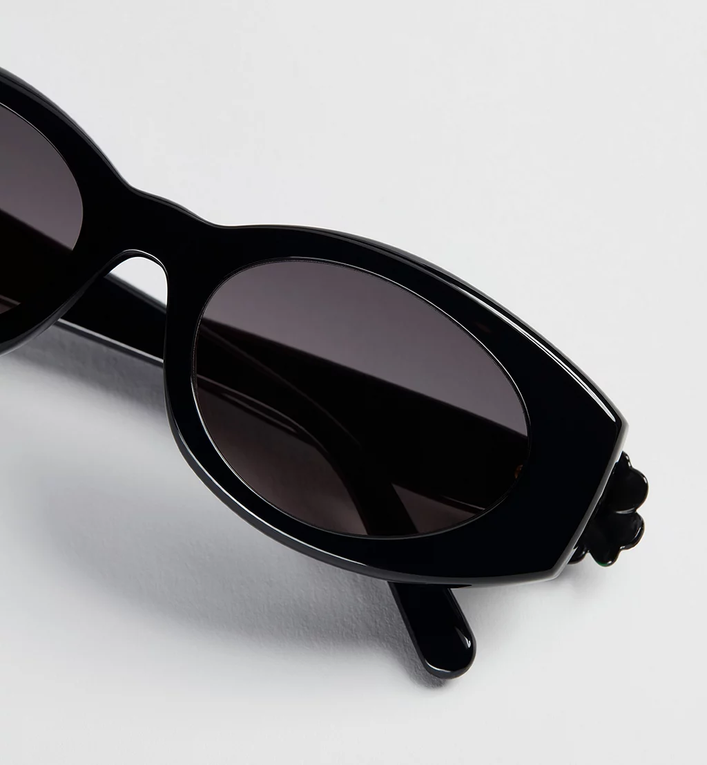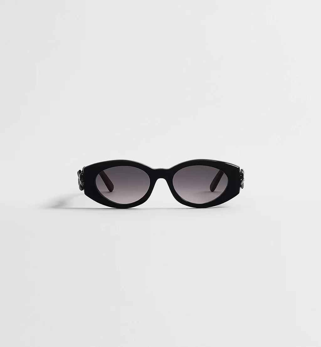 Gli occhiali da sole Dior Clover B1I, disegnati da Jonathan Anderson per la Maison, riflettono un’estetica moderna e infondono nuova linfa in uno dei simboli portafortuna di Dior. La montatura ovale in acetato nero lucido presenta aste impreziosite dalla firma Dior color oro, oltre a quadrifogli laccati neri e una delicata coccinella. Completati da lenti grigie sfumate, sono perfetti per donare un tocco sartoriale a qualsiasi look.