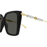 Montatura combi chic e femminile, impreziosita da sei perle o dettagli in strass su ciascuna asta e dal logo Interlocking G. Forma a farfalla oversize. Eleganti colorazioni con finiture galvaniche oro e argento. Aste decorate con perle o strass, a seconda della SKU.