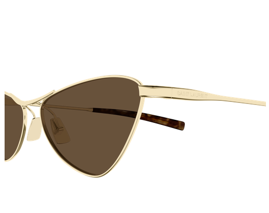 MONTATURA IN METALLO COMPATTA CON UNA FORMA CAT-EYE DI TENDENZA, PER UN LOOK UNICO. LOGO SAINT LAURENT INCISO SU ENTRAMBE LE ASTE.