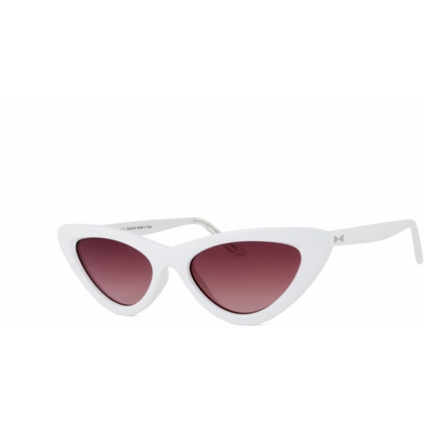 Occhiali da sole da donna Snob Milano con forma a occhio di gatto, montatura in acetato bianco e lenti sfumate rosa.